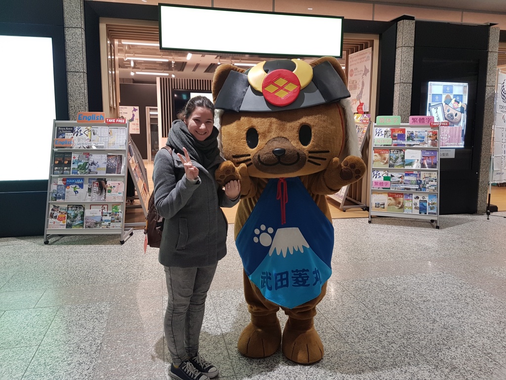 Nous sommes ensuite redescendues, et là, nous avons croisé une mascotte trop mignonne ! J’ai un faible pour les mascottes japonaises…. Bon, en même temps j’ai un faible pour tout ce qui touche au Japon…