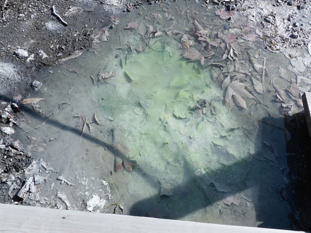 La source des onsen était très sympa, quoi que l’odeur très franchement désagréable, car c’était l’endroit avec la plus forte odeur ! Dans les mares ont voyait des petites bubulles et j’ai touché… c’est chaud ! Ça donne pas envie de se baigner vu comme ça mais quand on est dedans version onsen c’est le paradis !